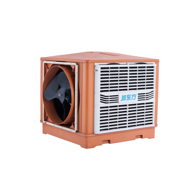 潤東方環保空調RDF-18B是根據“水(shui)(shui)蒸發吸熱”這一自(zi)然物理現(xian)象制冷(leng),室外的(de)新鮮空氣經浸水(shui)(shui)的(de)濕簾后(hou),充分(fen)蒸發吸熱后(hou)變成涼風(feng),在(zai)通過風(feng)機將(jiang)冷(leng)風(feng)源源不斷的(de)送入室內,從而達到降溫目的(de)。